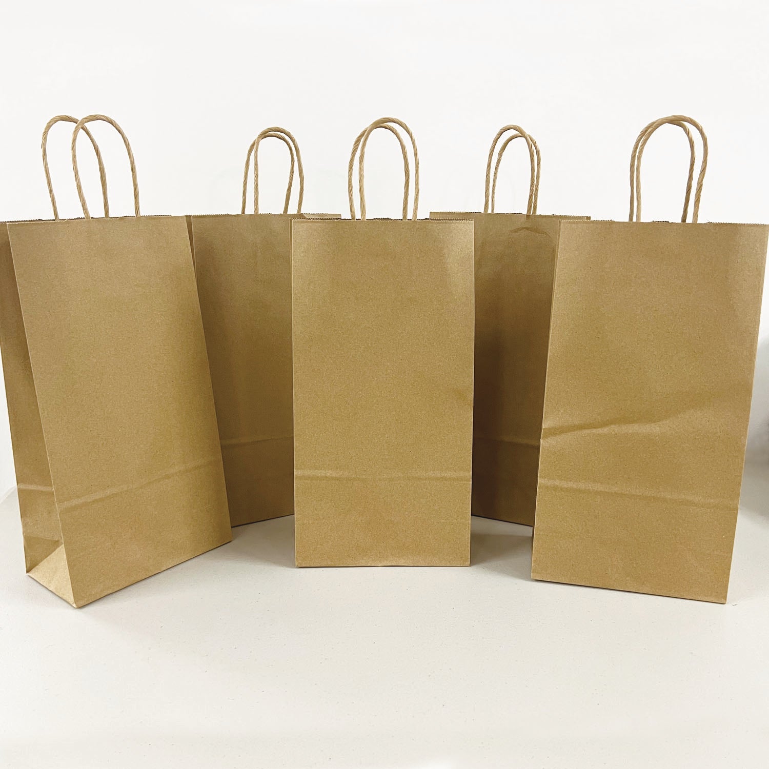 STRONG AND FASHIONABLE: Flat bottom with reinforced twisted twine handles, made by premium quality natural kraft paper, which makes it hold up to 8 lbs
